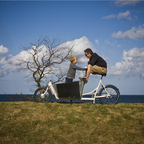 La Christiania bikes® 2wheeler è una filante e compatta cargo a due ruote - Equipaggiata di serie con cambio interno a 8 rapporti (shimano Nexus) e freni Roller. Può montare il manubrio dritto per la massima spinta o quello rialzato compatibile con la capottina pioggia. Box in legno marino 9mm con rinforzi in alluminio. Porticina laterale, panchette, cuscini, telaio anodizzato o verniciato, copertoni anti-foro e pedalata assistita opzionale completano una dotazione di tutto rispetto,